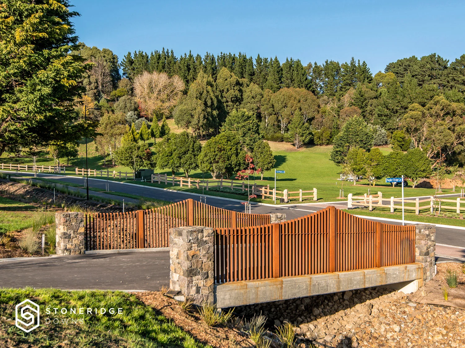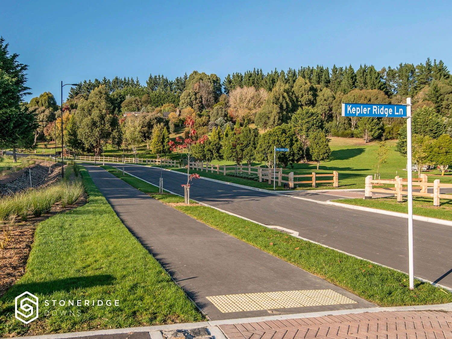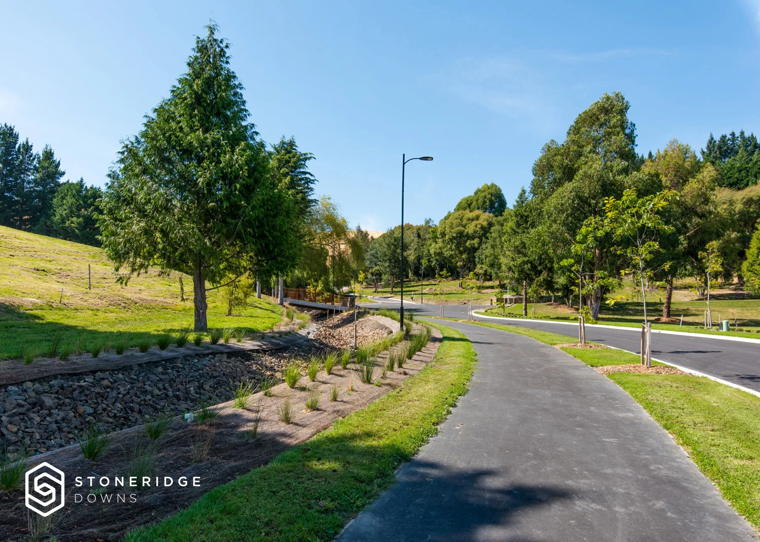 The design philosophy throughout the Stoneridge Downs project has been to preserve and enhance the integrity, natural character and biodiversity of the landscape and setting to ensure that this subdivision is well integrated within its surroundings. Mature trees and bush have been retained and enhanced.